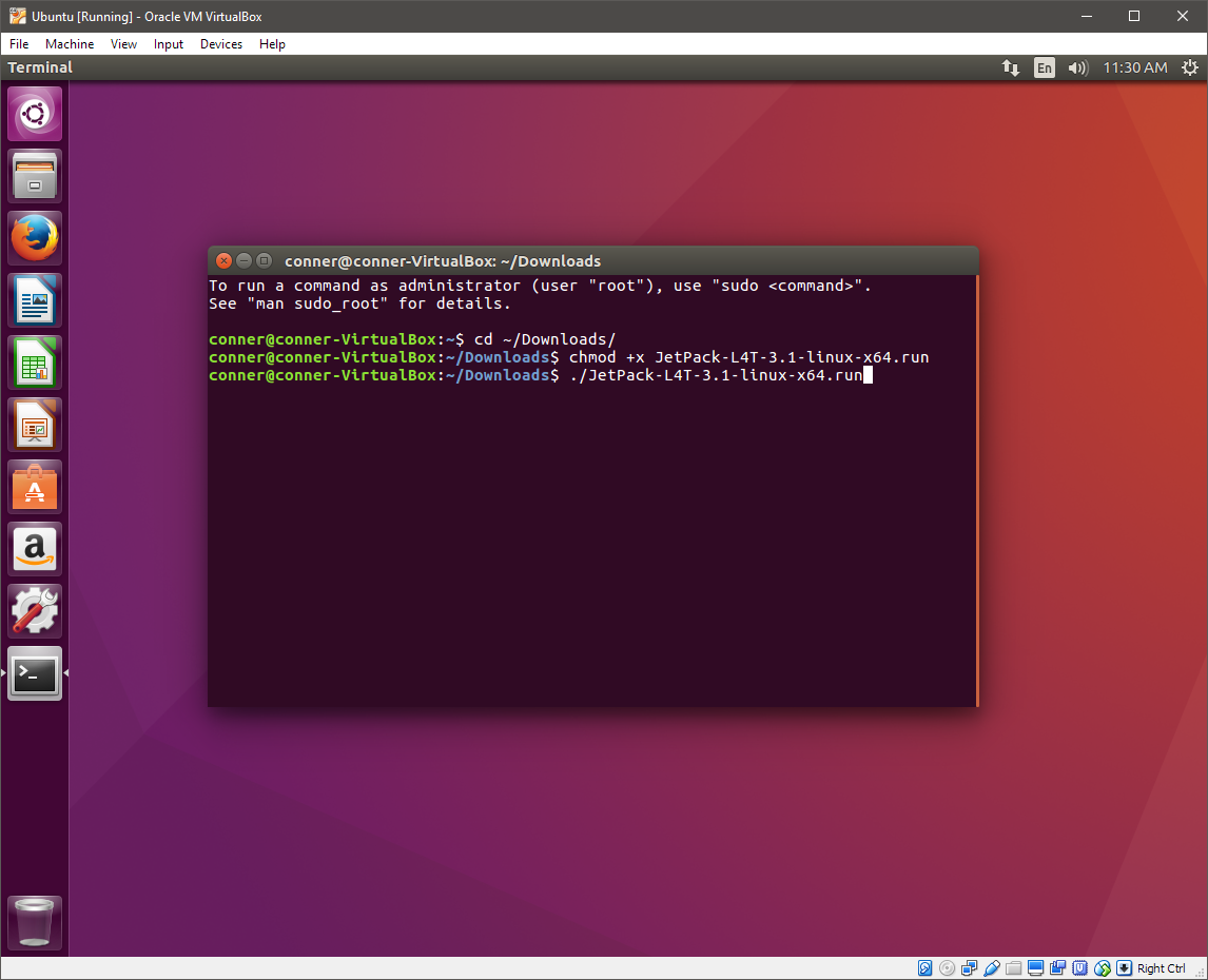 Once you have those installed, setup a 64-bit Ubuntu VM with at least 30GB of virtual storage (the Jetpack packages can be quite large unpacked). Ubuntu ISOs can be downloaded from here. Instructions on how to do all this can be found here. Also, if you can only see 32-bit VM options when setting up a new VM, read this helpful article here.